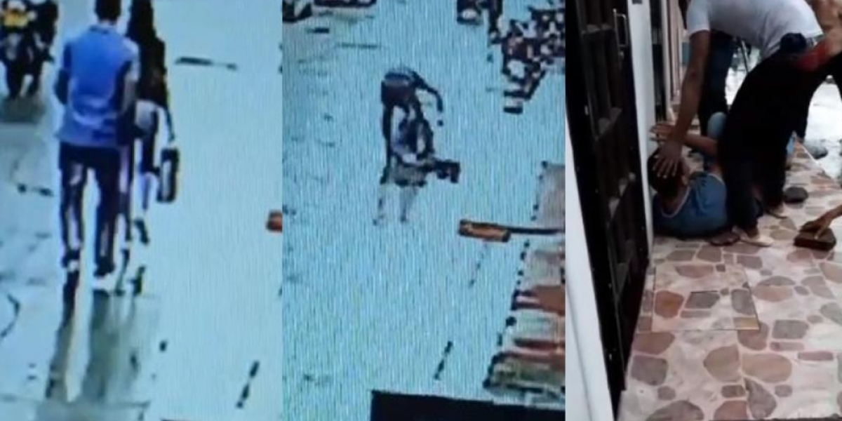 En un video de una cámara de seguridad quedó grabado el momento en que un hombre sorprende por la espalda a una mujer vendedora de tintos en pleno centro de la ciudad de Arauca y la ataca a cuchillo.