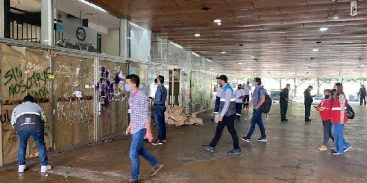 Los hechos ocurrieron justo cuando las autoridades de Medellín y la Policía intervenían dicho espacio, conocido también como parque de La Resistencia, donde un grupo de jóvenes, en su mayoría participantes de las manifestaciones, habían instalado carpas, puntualmente en la entrada de Casa de la Música.