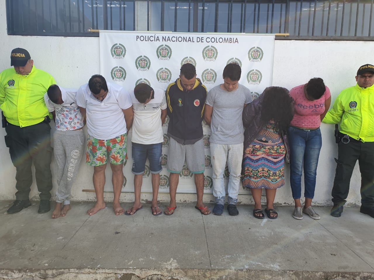 Los capturados fueron 5 hombres y 2 mujeres, identificados como José Javier Contreras del Portillo, alias ‘El Viejo’; Juliana Paola Martínez Zubira, alias ‘La India’; Kelvin Stick Ibarra Castañeda, alias ‘Negrocio’; Waldir Arturo Fernández Gallardo, alias ‘El Flaco’; Yesenia María Medina Flores, alias ‘La Negra’; Leonardo Andrés Guerra Oquendo, alias ‘El Universitario’; José Marconi Muñoz Caraballo, Alias ‘El Viejorro’, quienes están solicitados por el Juzgado Sexto Penal Municipal de Santa Marta por los delitos de concierto para delinquir y tráfico, fabricación y porte de estupefacientes.