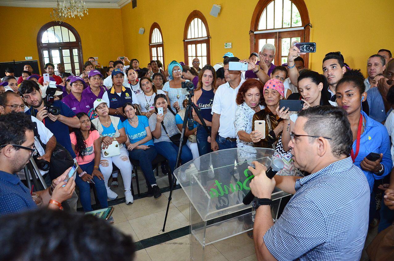 Casi a las 4 de la tarde, Rugeles firmó el acta de entrega del despacho a Martínez, en presencia de la Procuraduría, la Defensoría del Pueblo y secretarios, y luego abandonó el edificio de la Alcaldía en medio de los abucheos de los simpatizantes de Fuerza Ciudadana que estaban en el segundo piso.