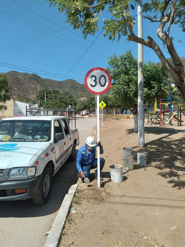 Instalan reductores de velocidad y señales de tránsito en zonas escolares de Santa Marta