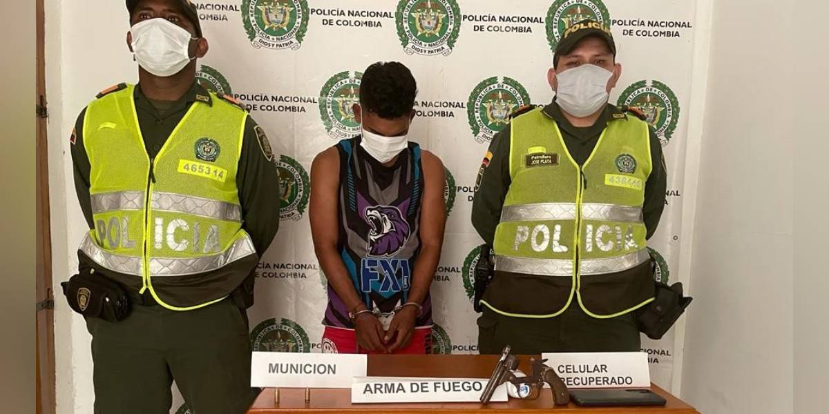 En una oportuna reacción la Policía logró capturar en flagrancia a Jhon Jairo Larios Padilla, de 22 años, portando un arma de fuego de manera ilegal y quien minutos antes, al parecer, le había robado el celular a una mujer en el municipio de Santa Ana, al sur del Magdalena.