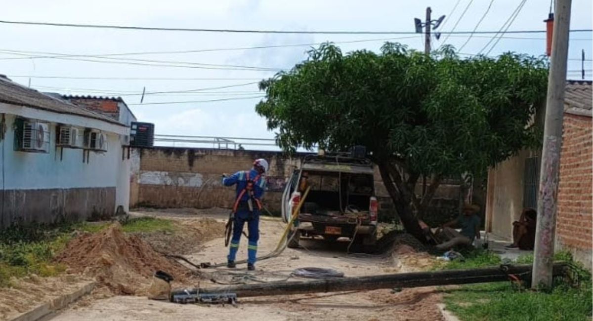 Personal técnico de la empresa Air-e intervenida, logró normalizar el servicio de energía en sector urbano del municipio de Sitionuevo, específicamente donde opera la sede de la registraduría municipal.