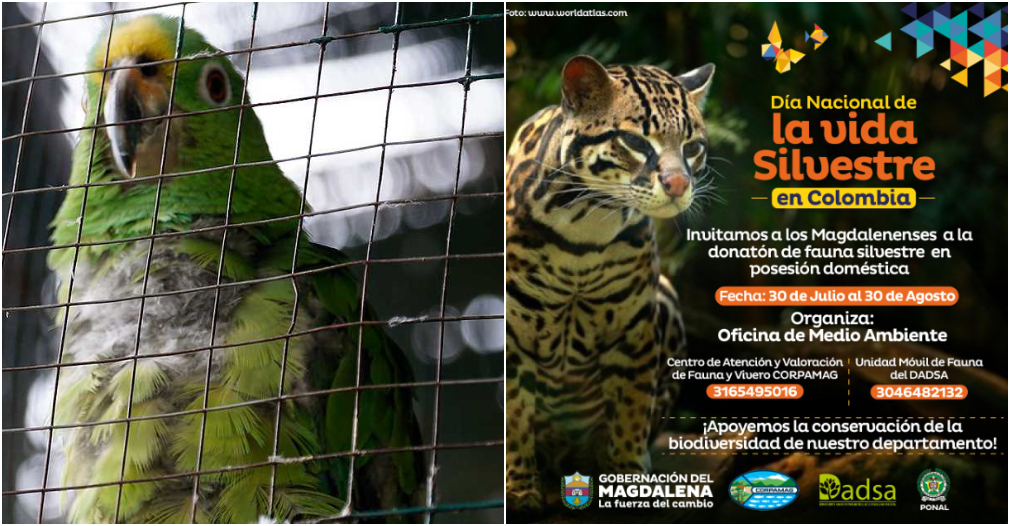 Con motivo del Día Nacional de la Vida Silvestre en Colombia, Gobernación del Magdalena, Corpamag, el Dadsa y la Policía Nacional se unen en una campaña denominada ‘Donatón de fauna silvestre en posesión domestica’.