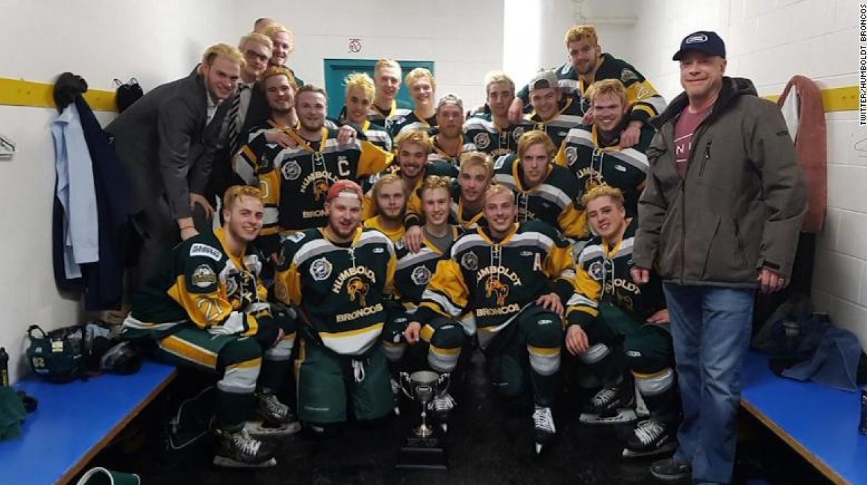 El equipo anfitrión Nipawin Haks de la liga junior de hockey de Saskatchewan anunció la colisión del bus del equipo Humboldt Broncos con un camión cuando se dirigían a disputar el encuentro.